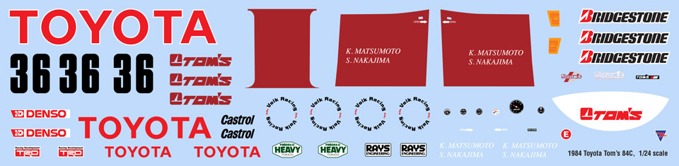 Designed for the Tamiya Toyota Tom's 84C 1/24 kit, available in a variety of scales.