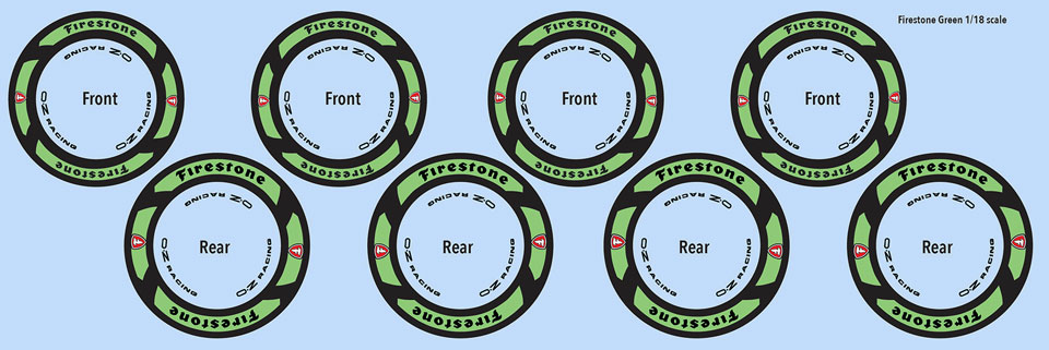 Tire decals for the current (2022 - ?) Indy cars for races outside of Indianapolis. Each scale has one set of tire decals per sheet. (one set equals enough to do both sides of four tires). The black sidewall produces a cleaner finished result than clear decal film which is very noticeable on a finished tire. We recommend trimming these right to the black areas when applying them. For tires used at Indianapolis, go here.