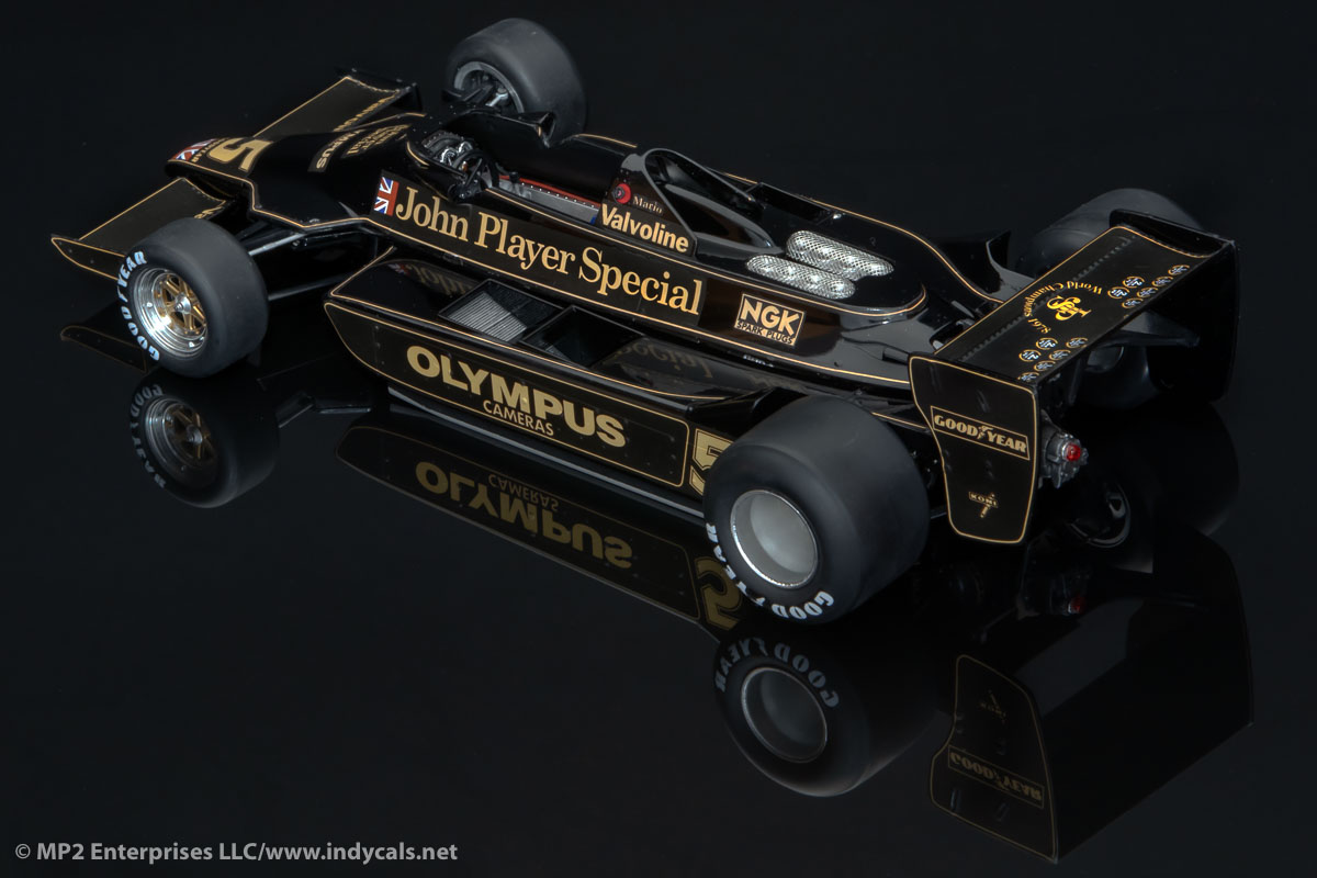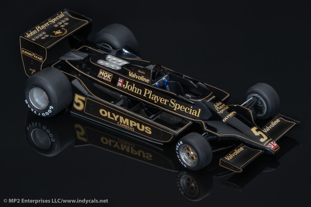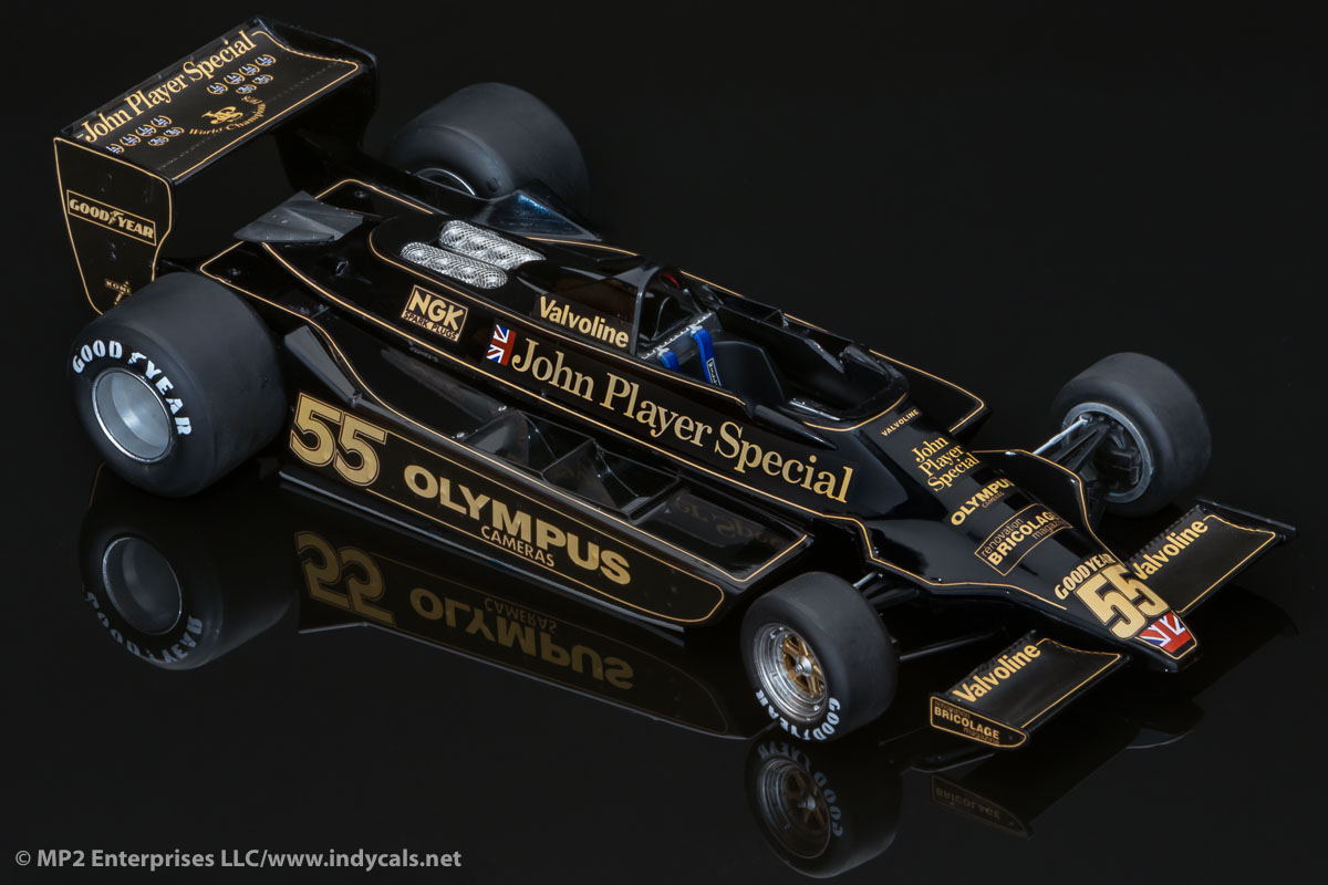 Decals for the Hasegawa Lotus 79 (pictured) or Tamiya Lotus 79. Due to slight differences in the kits, please specify Hasegawa or Tamiya - this is critical for the decals to fit correctly. We also offer an option for the number 55 J.P. Jarier version to replicate his Canadian Grand Prix pole position car. Please specify Andretti, Peterson or Jarier.