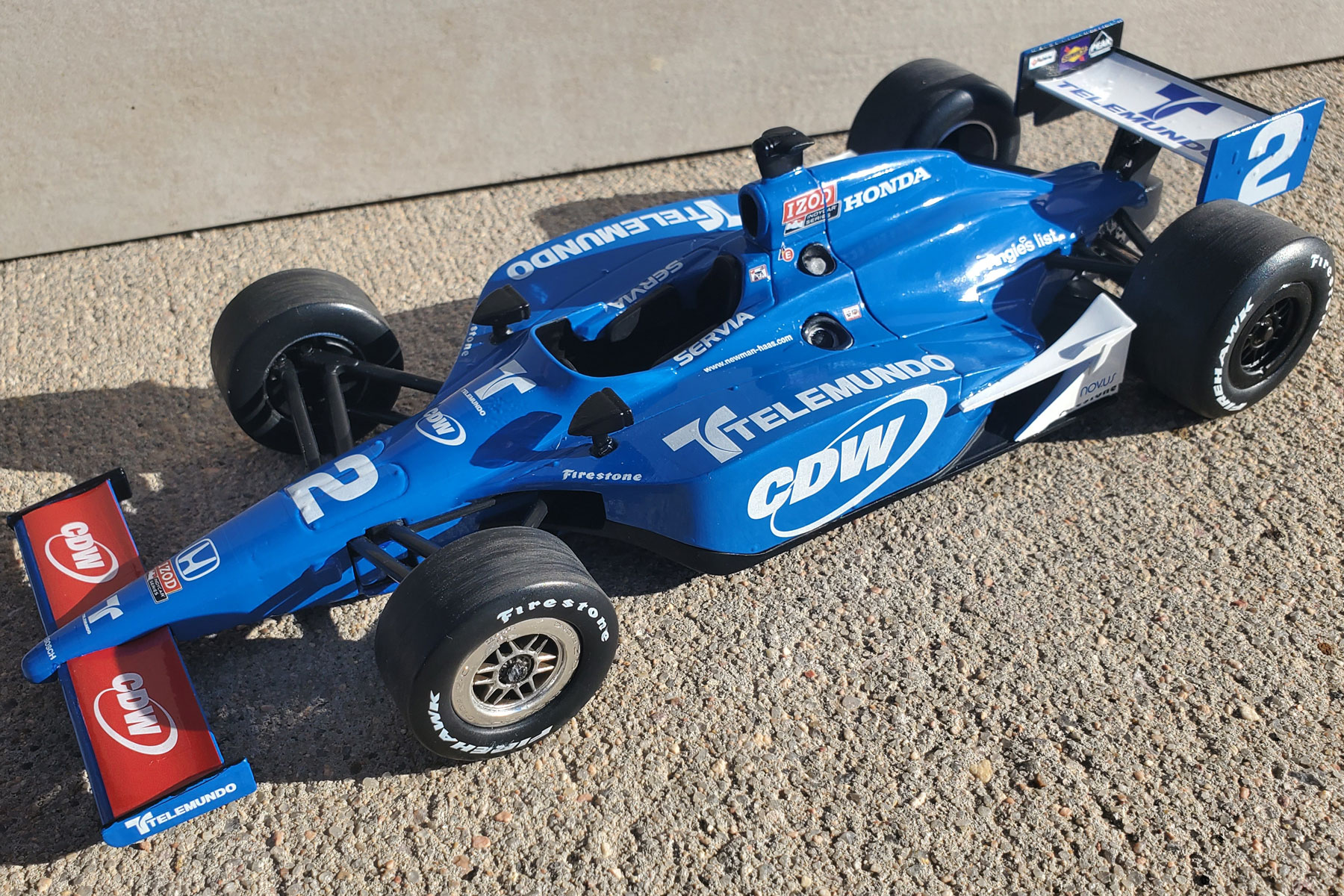 Decals for the Newman Haas Dallara driven by Oriol Servia in the 2011 Indianapolis 500. Model photos courtesy of Dan Bley Racing Art