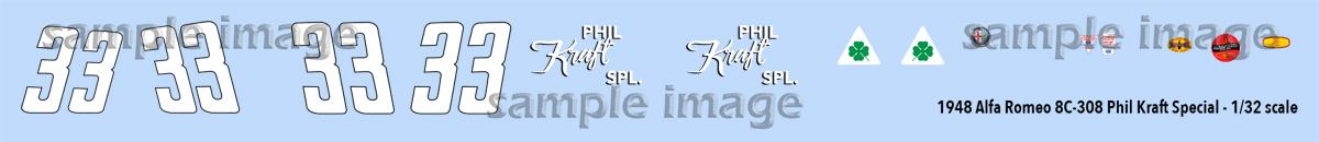 Decals for the Alfa Romeo 8C-308 driven in the 1948 Indy 500 by Johnny Mauro