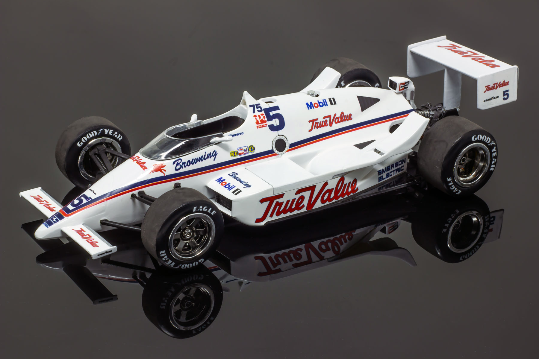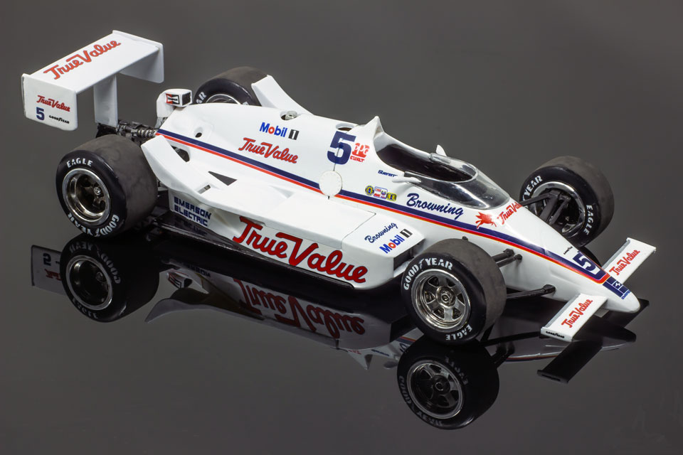 Convert that old AMT Cummins March into the True Value March driven to fourth place by Roberto Guerrero in the 1986 Indy 500. Available in a variety of scales. If you'd like to improve upon the AMT kit, check out this detailed part set from Classic Racing Resins.