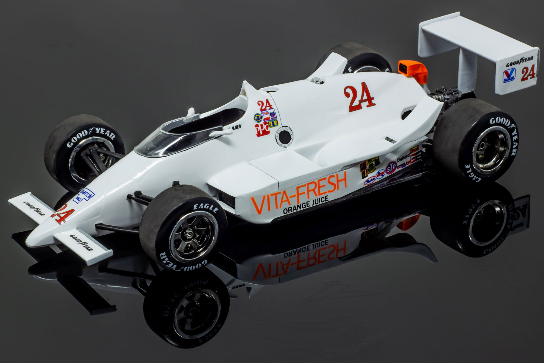 Convert that old AMT Cummins March into the Vita Fresh OJ March driven by Gary Bettenhausen in the 1986 Indy 500. Available in a variety of scales.