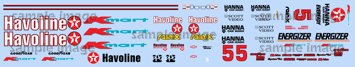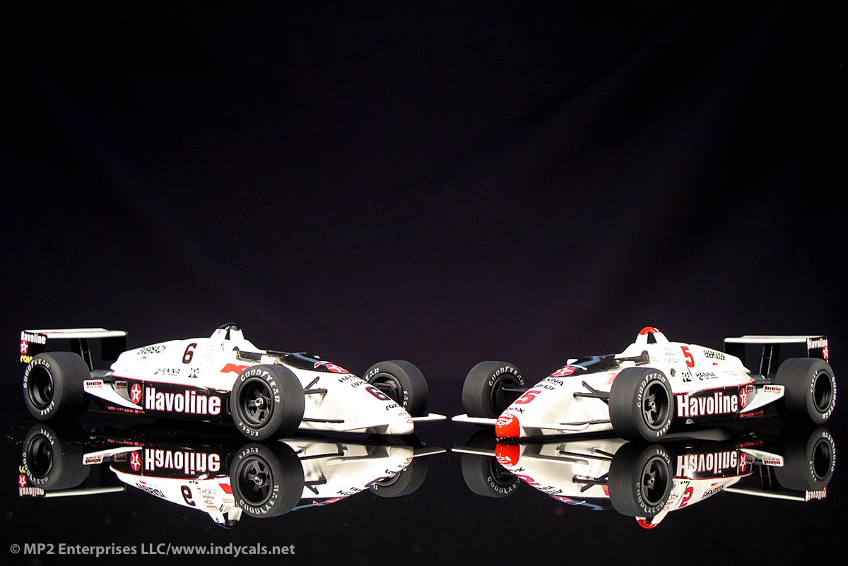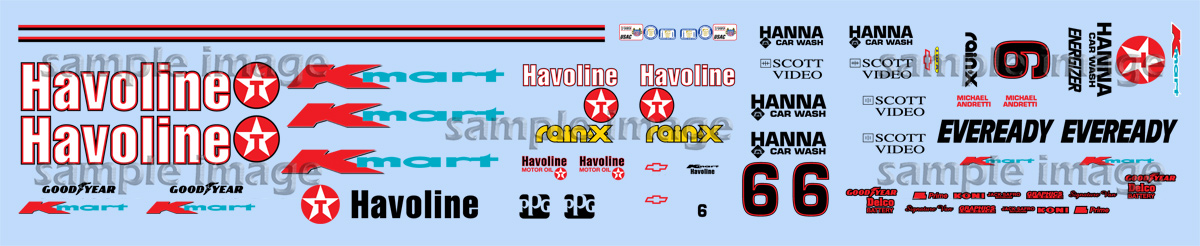 Designed for the AMT Lolas, available in a wide variety of scales. Available for Mario Andretti (#5) or Michael Andretti (#6). These sheets depict the 1989 Indianapolis 500 race day livery which differed slightly from the qualifying livery, most notably (but not limited to) the rear wingplates on race day were black, vs white in qualifying, and Mario had a red-tipped nose on his car, vs white in qualifying. Model photos courtesy of Greg Randolph.