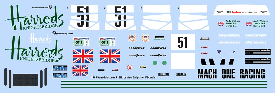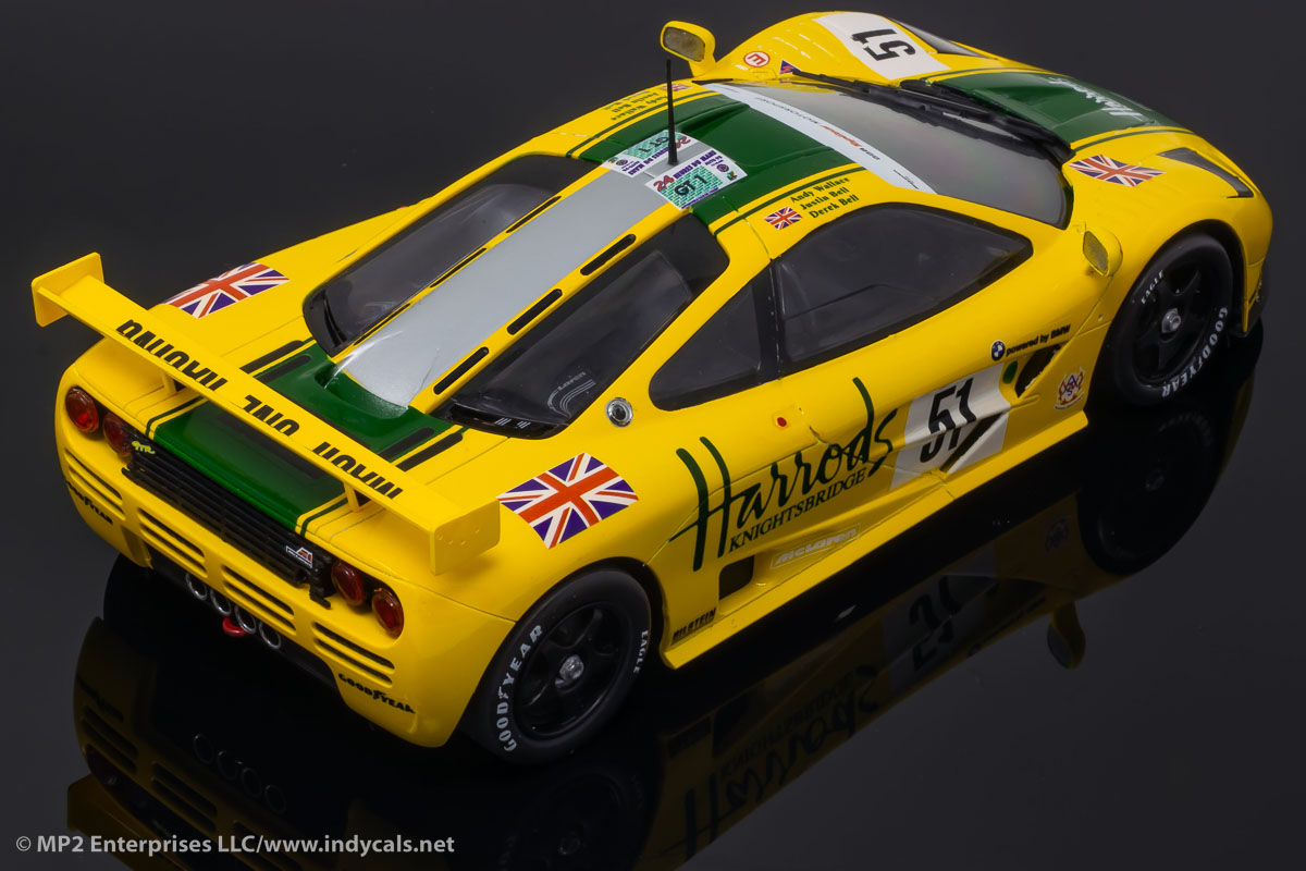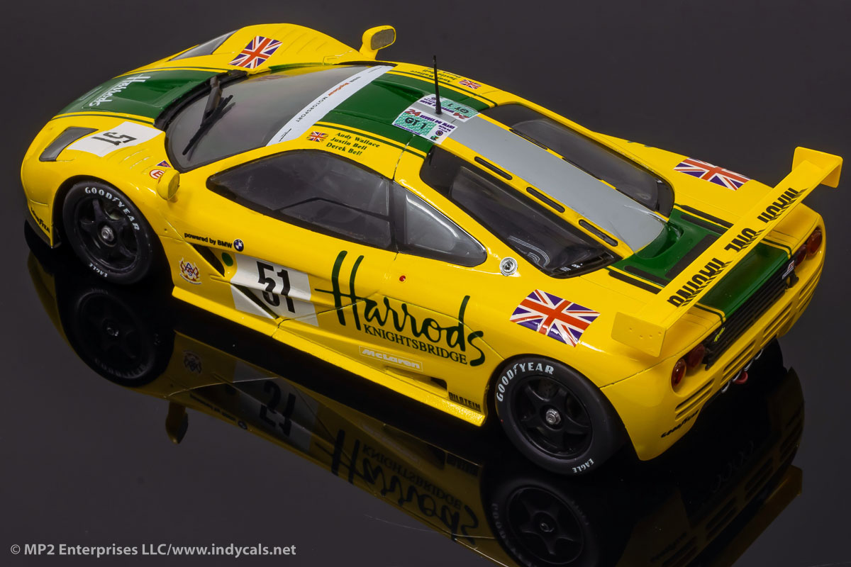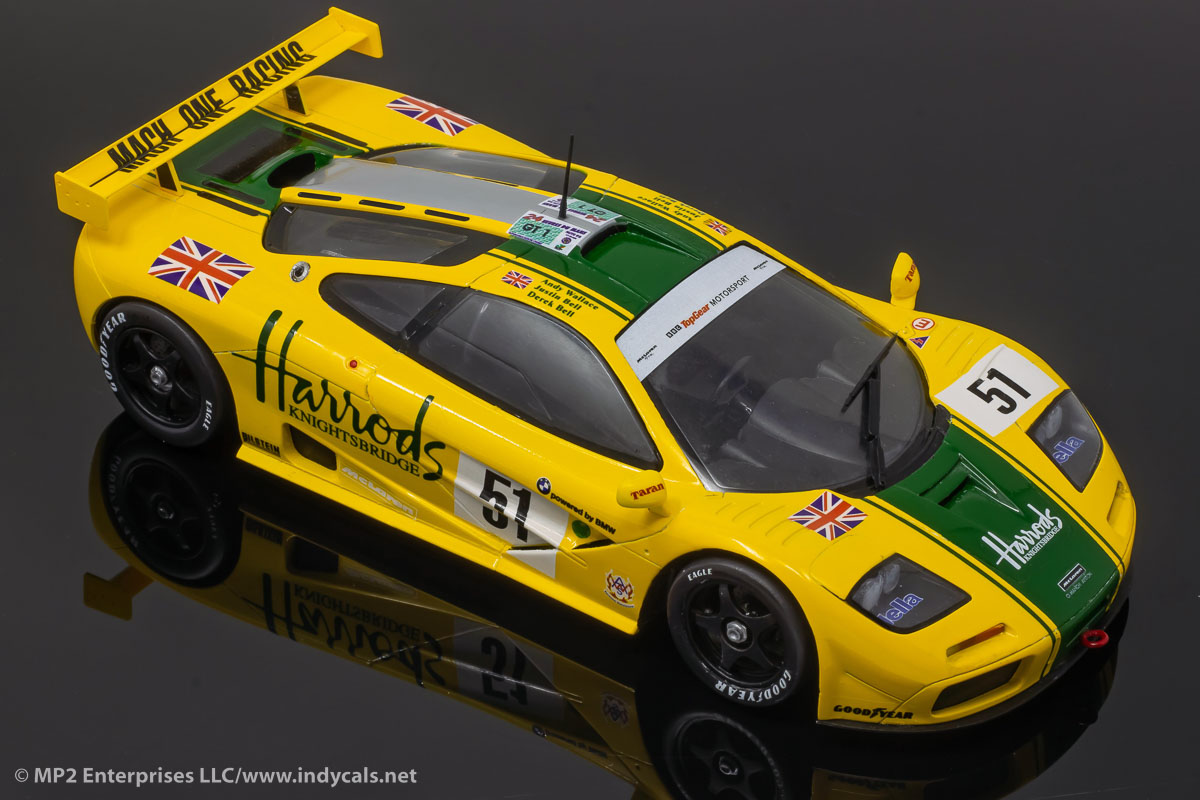 Designed for the Fujim McLaren F1 GTR short tail kits, available in other scales.Classic Racing Resins makes a conversion kit to fix the ride-height issues with the Fujimi kit as well as providing optional parts. Also note, that despite Goodyear having moved to yellow tire lettering by 1995, they ran white lettering at Le Mans that year. Model photos courtesy Classic Racing Resins.