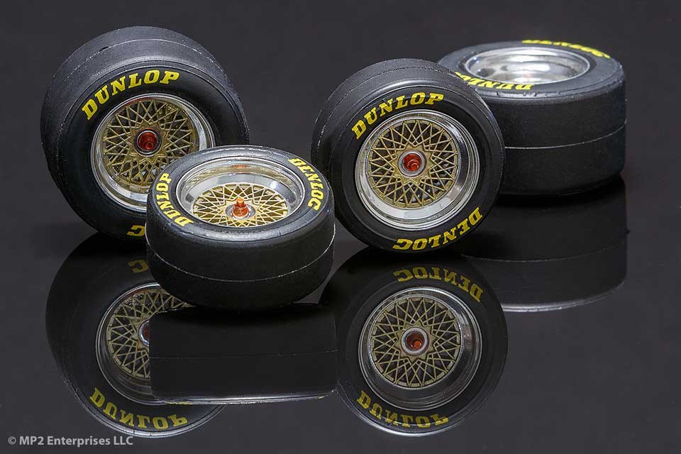 1/24 scale ultra-low profile tires fit Classic Racing Resing Porsche 962 conversion tires.